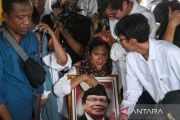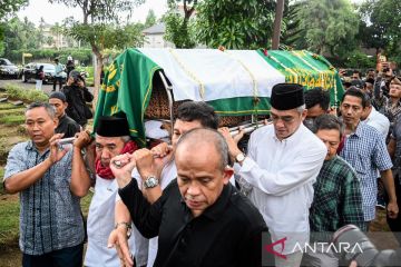 Kerabat menghadiri pemakaman mantan Menko Kemaritiman Rizal Ramli di TPU Jeruk Purut, Jakarta, Kamis (4/1/2024). Rizal Ramli yang juga dikenal sebagai pakar ekonomi tersebut meninggal dunia dalam usia 69 tahun pada Selasa (2/1/2024) di Rumah Sakit Cipto Mangunkusumo, Jakarta karena sakit. ANTARA FOTO/Sulthony Hasanuddin/tom.