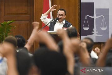 Co-Captain Tim Nasional Pemenangan Anies Baswedan-Muhaimin Iskandar (Timnas AMIN) Sudirman Said memberikan pidato politiknya pada acara Deklarasi Advokat Tim Hukum Nasional Anies Baswedan-Muhaimin Iskandar (THN AMIN) Jawa Tengah di Semarang, Jawa Tengah, Jumat (5/1/2024). Deklarasi tersebut diikuti para advokat dari 35 wilayah kabupaten dan kota se-Jawa Tengah. ANTARA FOTO/Muhammad Adimaja/nym.