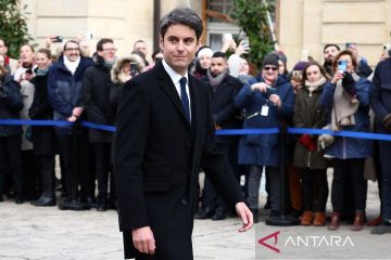 Perdana Menteri Prancis yang baru diangkat Gabriel Attal tiba untuk menghadiri upacara serah terima dengan Perdana Menteri Prancis Elisabeth Borne di Hotel Matignon, Paris, Prancis, Selasa (9/1/2024). Elisabeth Borne mengundurkan diri digantikan Menteri Pendidikan Gabriel Attal yang menjadi perdana menteri termuda dalam sejarah Prancis. ANTARA FOTO/Reuters/Stephanie Lecocq/Spt.