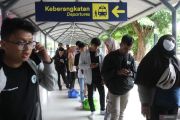 Sejumlah calon penumpang kereta api antre untuk melakukan pembatalan keberangkatan di Stasiun Surabaya Gubeng, Surabaya, Jawa Timur, Minggu (14/1/2024). PT Kereta Api Indonesia Daop 8 Surabaya melakukan perubahan pola operasi perjalanan beberapa diantaranya KA Ranggajati relasi Jember-Surabaya Gubeng-Cirebon, KA Logawa relasi Jember-Surabaya Gubeng-Purwokerto serta pembatalan perjalanan KA Arjuno Ekspres relasi Surabaya Gubeng-Malang serta memberikan kompensasi pengembalian uang tiket sebesar 100 persen kepada calon penumpang yang terdampak anjloknya KA Pandalungan di emplasemen Stasiun Tanggulangin, Sidoarjo. ANTARA FOTO/Didik Suhartono/foc.