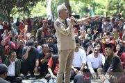 Capres nomor urut 3 Ganjar Pranowo (kiri) menyalami warga saat bertemu dengan kelompok tani, tokoh agama, hingga lembaga masyarakat desa hutan (LMDH) di kawasan Widodaren, Kabupaten Ngawi, Jawa Timur, Kamis (18/1/2024). Dalam safari politiknya, Ganjar Pranowo menyerap aspirasi warga dari permasalahan pembatasan kuota pupuk, stunting hingga LMDH. ANTARA FOTO/M Risyal Hidayat/Spt.