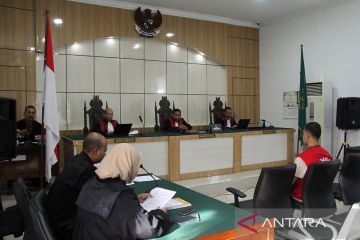 Jaksa penuntut umum menyerahkan salinan tuntutan perkara narkotika 19.616 butir ekstasi dengan terdakwa Ignasius Tommy Hartanto (kiri) kepada Majelis Hakim di Pengadilan Negeri Dumai, Kota Dumai, Riau, Kamis (18/1/2024). Jaksa menuntut Ignasius Tommy Hartanto dengan hukuman 18 tahun penjara karena melanggar Pasal 114 Ayat (2) subsider Pasal 112 Ayat (2) UU Nomor 35 Tahun 2009 tentang Narkotika dengan sengaja membawa 19.616 butir ekstasi tanpa izin dari Malaysia ke Indonesia pada 8 September 2023. ANTARA FOTO/Aswaddy Hamid/pras.