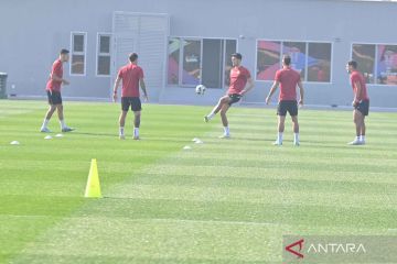 Sejumlah pesepak bola Timnas Indonesia melakukan latihan di Lapangan Al Egla 2, Lusail, Qatar, Selasa (23/1/2024). Timnas Indonesia akan bertanding melawan Timnas Jepang pada pertandingan penentu grup D Piala Asia 2023 di Qatar pada Rabu (24/1). ANTARAFOTO/Yusran Uccang/nym.