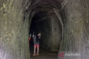 Pengunjung memasuki goa peninggalan Jepang di Taman Hutan Raya Djuanda, Kabupaten Bandung, Jawa Barat, Sabtu (27/1/2024). Kompleks goa militer pada masa penjajahan Jepang yang dibangun pada 1942 dengan cara melubangi dinding dan memiliki empat pintu tersebut saat ini dikelola oleh Taman Hutan Raya Djuanda yang menjadi tujuan utama wisata sejarah penjajahan Republik Indonesia. ANTARA FOTO/Raisan Al Farisi/Spt.