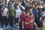 Presiden Joko Widodo (kedua kiri) bersama Ibu Negara Iriana Joko Widodo (ketiga kiri) berjalan kaki di Lapangan Gasibu, Bandung, Jawa Barat, Minggu (4/2/2024) Presiden Joko Widodo ditemani keluarga melakukan jalan santai di tempat itu. ANTARA FOTO/Hafidz Mubarak A/foc.