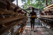 Pekerja memanen telur-telur ayam di salah satu peternakan yang dikelola Keuskupan Agats di Distrik Agats, Kabupaten Asmat, Papua Selatan, Minggu (11/2/2024). Keuskupan Agats mengelola peternakan ayam petelur selain untuk dipasarkan kepada masyarakat sekitar juga untuk pemenuhan gizi masyarakat Asmat. ANTARA FOTO/Aprillio Akbar/aww.