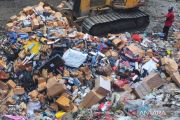 Pemusnahan barang milik negara hasil penindakan cukai. Petugas mengoperasikan alat berat untuk mengubur rokok ilegal hasil penindakan saat pemusnahan barang milik negara di TPA Tanjungrejo, Jekulo, Kudus, Jawa Tengah, Rabu (21/2/2024). Bea Cukai Kudus memusnahkan lebih dari 6 juta batang rokok ilegal berbagai merek senilai Rp7,69 milyar yang terdiri dari 6.419.934 batang Sigaret Kretek Mesin (SKM) dan 2.384 batang Sigaret Kretek Tangan (SKT) serta peralatan penunjang pembuatan rokok ilegal yang terdiri 48 kilogram etiket dan satu unit printer serta empat unit alat pemanas hasil penindakan cukai periode Juni 2022- September 2023. ANTARA FOTO/Yusuf Nugroho/wpa.