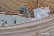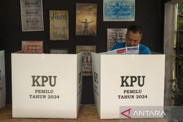 Seorang pemilih berada di bilik suara saat memberikan hak suara pada pemungutan suara ulang di TPS 23, Kumpulrejo, Argomulyo, Salatiga, Jawa Tengah, Kamis (22/2/2024). Komisi Pemilihan Umum (KPU) Kota Salatiga menggelar pemungutan suara ulang di satu tempat pemungutan suara yang diakibatkan karena kesalahan petugas kelompok penyelenggara pemungutan suara (KPPS) yang memberikan hak suara kepada tujuh pemilih yang tidak memiliki hak suara terhadap surat suara DPR, DPRD Provinsi Jawa Tengah, dan DPRD Kota Salatiga. ANTARA FOTO/Aloysius Jarot Nugroho/rwa.