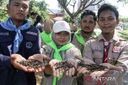 Mahasiswa mencabut paku yang tertancap saat gerakan cabut paku di pohon pasca pemilu 2024 di Lhokseumawe, Aceh, Sabtu (24/2/2024). Gerakan mahasiswa gabungan dari sejumlah universitas dan Kwartir Cabang Pramuka Aceh Utara tersebut mencabut bersih semua paku pada pohon bekas pemasangan poster caleg sebagai upaya menyelamatkan pohon sekaligus menggugah pemerintah agar membuat perda larangan memaku pohon. ANTARA FOTO/Rahmad/Spt.