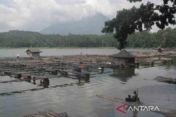 Warga memancing di kawasan wisata Ranu Klakah, Lumajang, Jawa Timur, Minggu (25/2/2024). Danau yang terbentuk dari letusan Gunung Lemongan tersebut menjadi salah satu destinasi wisata Kabupaten Lumajang dengan potensi ekonomi berupa wisata air serta budi daya ikan air tawar dengan luas area mencapai 22 hektare. ANTARA FOTO/Ari Bowo Sucipto/rwa.