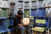 Seorang perajin memperlihatkan jam dinding dari limbah plastik di Padang, Sumatera Barat, Senin (26/2/2024). Pemanfaatan sampah plastik daur ulang yang dijadikan produk mebel, jam dinding dan suvenir tersebut di jual dengan harga Rp12 ribu hingga Rp500 ribu per satuannya. ANTARA FOTO/Muhammad Arif Pribadi/foc.