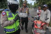 Personel Satlantas Polres Bogor menindak pengendara yang melanggar lalu lintas saat operasi keselamatan Lodaya 2024 di Jalan Raya Tegar Beriman, Kabupaten Bogor, Jawa Barat, Selasa (5/3/2024). Sebanyak 11pelanggaran lalu lintas yang akan menjadi target sasaran penindakan oleh petugas pada operasi keselamatan Lodaya 2024 diantaranya knalpot yang tidak sesuai spesifikasi, mengenakan ponsel saat berkendara, dan melawan arus. ANTARAA FOTO/Yulius Satria Wijaya/rwa.