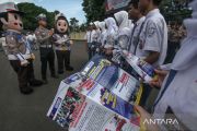 Personel Satlantas Polres Bogor memberikan sosialisasi dan edukasi berkendara kepada siswa sekolah di Polres Bogor, Cibinong, Kabupaten Bogor, Jawa Barat, Selasa (5/3/2024). Kepolisian daerah Jawa Barat melaksakan operasi keselamatan Lodaya 2024 selama 14 hari mulai tanggal 4 hingga 17 Maret 2024, dan Polda Jabar menerjunkan 2.600 personel di seluruh Jawa Barat. ANTARA FOTO/Yulius Satria Wijaya/rwa.