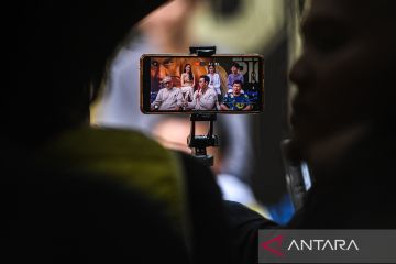 Sutradara film Ellyas Pical, Herwin Novianto (kiri) bersama Pemeran utama film Ellyas Pical, Denny Sumargo (ketiga kiri), Aktris Della Dartyan (kedua kiri), Aktris Parisa Sham (keempat kiri), Petinju Ellyas Pical (kanan) dan Aktor cilik bimasena (kedua kanan) memberikan keterangan saat peluncuran film series biopic berjudul Ellyas Pical di Jakarta, Selasa (12/3/2024). Film series biopic tersebut menceritakan tentang perjalanan karir legenda petinju Indonesia Ellyas Pical dari masa kecil hingga menjadi juara dunia tinju kelas super terbang IBF, dan akan rilis pada 21 Maret 2024 di Prime Video. ANTARA FOTO/Muhammad Adimaja/pras.