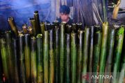Pekerja memasak lemang dalam bambu menggunakan bara api dari kayu di Pontianak, Kalimantan Barat, Kamis (14/3/2024). Lemang yang terbuat dari campuran beras ketan dan santan kelapa tersebut merupakan penganan untuk berbuka puasa khas Pontianak yang dijual seharga Rp30 ribu hingga Rp40 ribu per batang sesuai ukuran batang bambu. ANTARA FOTO/Jessica Wuysang/tom.