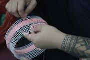 Warga binaan membuat peci rajut di ruang kerajinan Lapas Perempuan Kelas IIA, Sukun, Malang, Jawa Timur, Selasa (19/3/2024). Warga binaan lapas tersebut dilatih berwirausaha dengan memproduksi peci rajut untuk dijual ke pasaran sebagai suvenir haji melalui pihak kedua dan hasil penjualan dari produksi sebanyak 100 buah per hari itu sebagian akan menjadi tabungan warga binaan yang nantinya diserahkan setelah masa hukuman berakhir. ANTARA FOTO/Ari Bowo Sucipto/Spt.