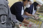 Warga binaan membuat kue kering di Lapas Perempuan Kelas IIA, Sukun, Malang, Jawa Timur, Selasa (19/3/2024). Setiap bulan Ramadhan warga binaan di lapas tersebut membuat kue kering untuk parsel Lebaran dengan produksi berkisar 50 toples kemudian dijual ke berbagai toko maupun konsumen perorangan melalui pasar digital dengan harga Rp65 ribu - Rp85 ribu per toples. ANTARA FOTO/Ari Bowo Sucipto/Spt.
