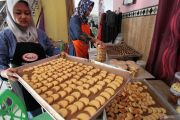 Pekerja menyelesaikan pembuatan kue kering di industri rumahan Salzi Bakery, Depok, Jawa Barat, Jumat (29/3/2024). Usaha rumahan yang berdiri sejak 2015 itu mampu menghasilkan 300 hingga 400 toples kemasan dari beragam kue kering dalam sehari, seperti kue nastar, kue kacang, kue lidah kucing, kue kastengel, dan kue putri salju yang dijual di kawasan Jabodetabek . ANTARA FOTO/Yulius Satria Wijaya/YU