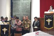 Menko Polhukam Hadi Tjahjanto (tengah) mengunjungi Gereja Protestan Indonesia bagian Barat (GPIB) Immanuel di Jakarta, Jumat (29/3/2024). Kunjungan Hadi Tjahjanto itu untuk memastikan keamanan berlangsungnya ibadah Jumat Agung yang merupakan rangkaian dari Tri Hari Suci Paskah. ANTARA FOTO/M Risyal Hidayat/Spt.