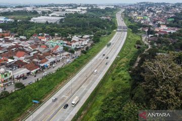 Foto udara sejumlah kendaraan roda empat melaju di Jalan Tol Trans Jawa Ruas Semarang-Batang menuju Gerbang Tol (GT) Kalikangkung, Semarang, Jawa Tengah, Minggu (31/3/2024). PT Jasamarga Semarang Batang memprediksi lonjakan volume kendaraan arus mudik Lebaran melewati GT Kalikangkung akan terjadi pada 6 April 2024 sebanyak 71.901 kendaraan per hari menuju arah ke Semarang, angka tersebut naik 4,4 persen lebih tinggi dibandingkan dengan periode libur Lebaran Idul Fitri tahun sebelumnya. ANTARA FOTO/Makna Zaezar/aww.