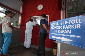 Pengendara melakukan isi ulang saldo uang elektronik (E-Toll) yang ada di Rest Area KM 14 Tangerang - Jakarta, Pinang, Kota Tangerang, Banten, Senin (1/4/2024). Badan Pengatur Jalan Tol (BPJT) Kementerian PUPR menghimbau agar pemudik melebihkan isi saldo uang elektronik (E-Toll) 30 sampai 40 persen, PT Jasa Marga (Persero) Tbk. pada periode Natal dan Tahun Baru (Nataru) 2023/2024 lalu, terdapat sekitar 28.000 kendaraan dengan saldo kurang pada rentang ruas tol Jakarta hingga Kalikangkung yang menyebabkan kemacetan. ANTARA FOTO/Muhammad Iqbal/YU