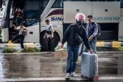 Sejumlah pemudik tiba di Terminal Bus Terpadu Pulo Gebang, Jakarta, Senin (15/4/2024). Dinas Kependudukan dan Pencatatan Sipil (Disdukcapil) DKI Jakarta memperkirakan jumlah pendatang baru di Jakarta mengalami penurunan yang sebelumnya pada tahun 2023 sebanyak 25.918 orang menjadi 10 ribu - 15 ribu orang usai Lebaran 2024. ANTARA FOTO/Bayu Pratama S/aww.