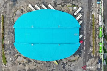 Foto udara suasana di Terminal Bus Terpadu Pulo Gebang, Jakarta, Senin (15/4/2024). Dinas Kependudukan dan Pencatatan Sipil (Disdukcapil) DKI Jakarta memperkirakan jumlah pendatang baru di Jakarta mengalami penurunan yang sebelumnya pada tahun 2023 sebanyak 25.918 orang menjadi 10 ribu - 15 ribu orang usai Lebaran 2024. ANTARA FOTO/Bayu Pratama S/aww.
