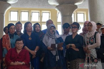 Civitas akademika Universitas Gadjah Mada menyatakan sikap saat acara bertajuk Kartini Bangkit: Mengawal Putusan MK untuk Demokrasi Indonesia di Balairung UGM, Sleman, D.I Yogyakarta, Minggu (21/4/2024). Jelang pembacaan PHPU atau sengketa Pilpres 2024 oleh MK pada Senin, 22 April 2024, para civitas akademika perempuan UGM berharap agar 8 hakim Mahkamah Konstitusi (MK) tidak hanya memutuskan berdasarkan koridor UU No. 7/2017, namun juga melihat fakta-fakta yang disampaikan hingga mempertimbangkan Amicus Curiae yang sudah disampaikan oleh berbagai pihak. ANTARA FOTO/Andreas Fitri Atmoko/aww.