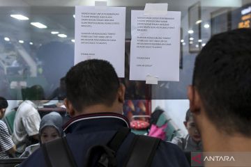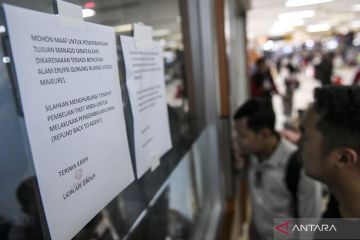 Calon penumpang melakukan proses pengaturan ulang jadwal penerbangan usai penerbangannya ke Manado dibatalkan di Bandara Sultan Hasanuddin, Maros, Sulawesi Selatan, Minggu (21/4/2024). Angkasa Pura 1 kembali memperpanjang penutupan Bandara Sam Ratulangi, Manado, hingga hari Senin (22/4) akibat dari dampak erupsi Gunung Ruang di Kabupaten Sitaro, Sulawesi Utara sehingga penerbangan dari dan menuju Manado dibatalkan. ANTARA FOTO/Hafidz Mubarak A/aww.