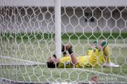 Penjaga gawang Persikabo 1973 Moch, Diky Indriyana tersungkur usai gagal mengantasipasi gol tendangan pesepak bola Persis Solo pada pertandingan BRI Liga I di Stadion Manahan, Solo, Jawa Tengah, Senin (22/4/2024). Persis Solo menang atas Persikabo 1973 dengan skor 2-1. ANTARA FOTO/Mohammad Ayudha/YU