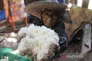 Petani garam tradisional menunjukkan garam dari air laut di Desa Glumpang Sulu Timu, Dewantara, Aceh Utara, Aceh, Senin (22/4/2024). Badan Pertanahan Nasional (BPN) Aceh Utara melalui program Gerakan Sinerji Reforma Agraria memfasilitasi sertifikasi halal UMKM garam secara gratis dan Nomor Induk Berusaha (NIB) dalam rangka mendorong peningkatan pengembangan usaha tambak garam tradisional di Aceh Utara. ANTARA FOTO/Rahmad/rwa.