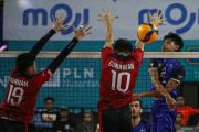 Pevoli putra Jakarta Pertamina Pertamax melakukan selebrasi usai mencetak poin atas lawannya Kudus Sukun Badak dalam pertandingan Proliga 2024 di GOR Jatidiri, Semarang, Jawa Tengah, Minggu (5/5/2024). Jakarta Pertamina Pertamax menang dengan skor 3-0 (25-23), (25-18), dan (25-23). ANTARA FOTO/Makna Zaezar/foc.