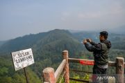 Warga memotret panorama di Kawasan Wisata Tebing Keraton yang merupakan bagian dari Sesar Lembang di Ciburial, Kabupaten Bandung, Jawa Barat, Selasa (21/5/2024). Berdasarkan Pemetaan Peta Sumber dan Bahaya Gempa Indonesia Pusat Studi Gempa Nasional (Pusgen), Sesar Lembang yang panjangnya sekitar 30 km ini memiliki potensi magnitudo maksimum 6,8. ANTARA FOTO/Raisan Al Farisi/wpa.