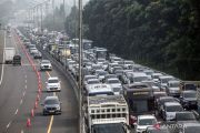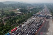 Foto udara antrean kendaraan keluar gerbang Tol Ciawi, jalur wisata Puncak, Ciawi, Kabupaten Bogor, Jawa Barat, Kamis (23/5/2024). Pada libur panjang Hari Raya Waisak, cuti bersama serta libur akhir pekan, kawasan wisata Puncak dipadati kendaraan wisatawan sehingga Satlantas Polres Bogor menerapkan arus lalu lintas sistem satu arah (one way) dari arah Jakarta menuju Puncak, sistem lawan arus di pintu keluar tol Ciawi untuk mengurai kemacetan kendaraan. ANTARA FOTO/Yulius Satria Wijaya/aww.