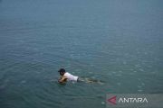 Warga berenang di sekitar ubur-ubur saat mengunjungi Pantai Mayangan di Probolinggo, Jawa Timur, Rabu (23/5/2024). Fenomena kemunculan ubur-ubur di pesisir pantai tersebut diperkirakan karena perubahan suhu air laut pada masa peralihan musim. ANTARA FOTO/Irfan Sumanjaya/rwa.