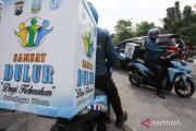 Polisi mengendarai sepeda motor Samsat Dugi Kelurahan (Samsat Dulur) menuju kantor Kelurahan Tanah Kalikedinding usai peluncurannya di Kantor Samsat Surabaya Utara, Surabaya, Jawa Timur, Selasa (4/6/2024). Ditlantas Polda Jawa Timur bersama Tim Pembina Samsat Jawa Timur meluncurkan inovasi Motor Samsat Dugi Kelurahan (Samsat Dulur) dengan tujuan mendekatkan pelayanan Samsat Surabaya Utara ke masyarakat dalam pembayaran pajak kendaraan bermotor (PKB). ANTARA FOTO/Didik Suhartono/wpa.