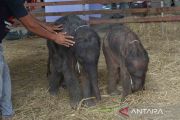 Dua bayi gajah berada di Phaniad Luang Elephant Village, Provinsi Ayutthaya, Thailand, Senin (10//6/2024). Pangjamjuri, seekor gajah betina berusia 36 tahun, melahirkan gajah kembar berjenis kelamin jantan dan betina di Provinsi Ayutthaya, Thailand, pada Jumat (7/6) malam waktu setempat. ANTAR FOTO/Xinhua/Rachen Sageamsak/rwa.