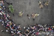 Foto udara peserta mengikuti Galuh Ethnic Carnival pada perayaan hari jadi ke-382 Ciamis di halaman Pendopo Ciamis, Kabupaten Ciamis, Jawa Barat, Selasa (11/6/2024). Kegiatan itu digelar sebagai salah satu media promosi memperkenalkan seni budaya, industri kreatif dan perdagangan dengan menampilkan ciri khas potensi daerah. ANTARA FOTO/Adeng Bustomi/rwa.