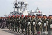 Sejumlah prajurit TNI Angkatan Laut melakukan penghormatan saat upacara pelepasan Satgas Latihan Bersama (Latma) Malindo Jaya 27AB/24 di Koarmada II, Surabaya, Jawa Timur, Jumat (14/6/2024). TNI Angkatan Laut mengirim KRI Frans Kaisiepo-368, KRI Sampari-628 dan Heli Panther HS-1311 dengan membawa 220 personel anak buah kapal, personel Komando Pasukan Katak TNI AL, penyelam dan tim kesehatan untuk melakukan latihan bersama Malindo Jaya 27AB/24 dengan Tentera Laut Diraja Malaysia (TLDM) di Kinibalu, Malaysia. ANTARA FOTO/Didik Suhartono/YU