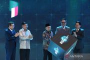 Wakil Presiden Ma'ruf Amin (tengah) didampingi Wakil Presiden ke-10 dan 12 RI Jusuf Kalla (kedua kiri), Direktur Utama BSI Hery Gunardi (kanan), Wakil Menteri BUMN Kartiko Wiroatmodjo (kedua kanan), dan Komisaris Utama BSI Muliaman D. Hadad (kiri) meresmikan pembukaan BSI International Expo 2024 di Jakarta Convention Center, Jakarta, Kamis (20/6/2024). BSI International Expo 2024 yang berlangsung 20-23 Juni 2023 itu diikuti 270 tenant dari dalam dan luar negeri untuk mengenalkan pelaku usaha halal ke dalam industri global dengan menargetkan jumlah transaksi mencapai Rp1 triliun. ANTARA FOTO/Indrianto Eko Suwarso/wpa.