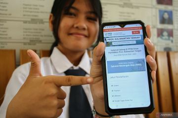 Calon siswa menunjukkan website Penerimaan Peserta Didik Baru (PPDB) di SMA Negeri 2 Palangka Raya, Kalimantan Tengah, Senin (24/6/2024). Dinas Pendidikan Provinsi Kalteng membuka pendaftaran PPDB tingkat SMA/SMK secara daring pada 24 - 27 Juni 2024 dengan mekanisme jalur zonasi, afirmasi, prestasi dan perpindahan tugas orang tua serta layanan pendaftaran melalui website. ANTARA FOTO/Auliya Rahman/foc.