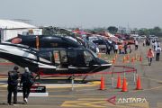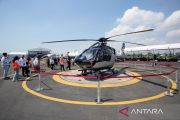 Pengunjung melihat helikopter yang dipamerkan pada Heli Expo Asia 2024 di Cengkareng Heliport Bandara Soekarno-Hatta, Tangerang, Banten, Rabu (26/6/2024). Pameran yang berlangsung hingga Minggu (30/6) tersebut menghadirkan berbagai model helikopter dari berbagai instansi serta menjadi ajang sewa dan jual beli helikopter. ANTARA FOTO/Muhammad Iqbal/tom.