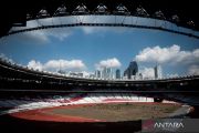 Sejumlah pekerja melakukan perawatan media tanam saat revitalisasi rumput Field of Play (FOP) lapangan Stadion Utama Gelora Bung Karno (SUGBK) di Jakarta, Rabu (26/6/2024). Pusat Pengelolaan Komplek Gelora Bung Karno (PPKGBK) melakukan perawatan tersebut agar Field of Play (FOP) lapangan Stadion Utama GBK itu dapat menyesuaikan dengan iklim dan cuaca di Jakarta. ANTARA FOTO/Aprillio Akbar/wpa.