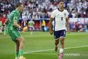 Sejumlah pemain Inggris berselebrasi usai menang adu penalti melawan Swiss pada perempatfinal Piala Eropa 2024 di Dusseldorf Arena, Dusseldorf, Jerman, Sabtu (6/7/2024). Inggris lolos ke semifinal Piala Eropa 2024 melalui adu penalti setelah sebelumnya imbang 1-1. ANTARA FOTO/REUTERS/Wolfgang Rattay/rwa.