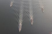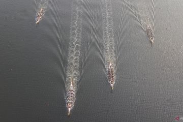 Foto udara sejumlah perahu mengikuti lomba pada acara Jakarta International Dragon Boat Festival (JIDBF) ke-6 di Ancol, Jakarta Utara, Sabtu (13/7/2024). JIDBF yang diikuti 51 tim dengan total peserta sebanyak 1.154 orang itu untuk mempromosikan olahraga dayung di Indonesia. ANTARA FOTO/Fakhri Hermansyah/foc.