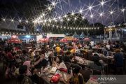Sejumlah pengunjung menikmati makanan pada hari terakhir penyelenggaraan Jakarta Fair Kemayoran 2024 di JIEXpo Kemayoran, Jakarta, Minggu (14/7/2024). PT Jakarta International Expo menyebutkan selama 33 hari penyelenggaraan Jakarta Fair Kemayoran 2024 yang diikuti oleh 2.550 pelaku usaha itu berhasil mencatat transaksi jual beli lebih dari Rp7,5 triliun. ANTARA FOTO/Aprillio Akbar/YU