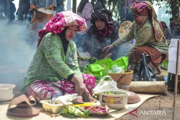 Peserta mengulek bumbu pepes ikan saat mengikuti lomba brengkes di Muaro Singoan, Batanghari, Jambi, Sabtu (20/7/2024). Lomba memasak secara tradisional yang diikuti 60 peserta dari perwakilan kelompok ibu-ibu dan sekolah setempat itu digelar dalam rangkaian Festival Suku Bathin IX, Kenduri Swarnabhumi 2024 di Batanghari. ANTARA FOTO/Wahdi Septiawan/YU