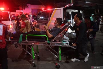 Keluarga mendampingi pasien setelah dievakusi dari Rumah Sakit Citra Arafiq yang terbakar ke pelataran parkir Masjid Al-Muhajirin, Kota Depok, Jawa Barat, Rabu (24/7/2024). Kebakaran RS Citra Arafiq diduga muncul dari gardu listrik yang berada dalam lingkungan rumah sakit, akibatnya listrik padam dan pasien dievakusi ke pelataran parkir masjid Al-Muhajirin dekat rumah sakit tersebut dan nantinya dirujuk dan dibawa ambulans ke rumah sakit lain terdekat. ANTARA FOTO/Yulius Satria Wijaya/foc.