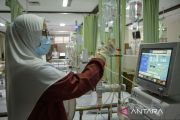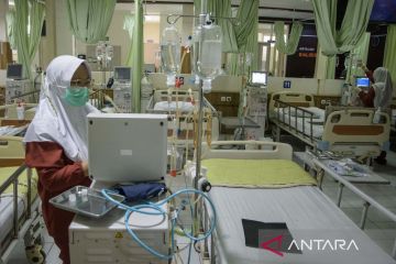 Petugas tenaga kesehatan menyiapkan fasilitas layanan kesehatan hemodialisis di ruangan instalasi dialisis RSUP dr Hasan Sadikin (RSHS) Bandung, Jawa Barat, Rabu (31/7/2024). Tim Divisi Nefrologi KSM Ilmu Kesehatan Anak RSHS menyatakan saat ini tidak ada peningkatan signifikan untuk jumlah kasus baru penyakit ginjal kronik pada anak yang harus mendapatkan penanganan cuci darah. RSHS terus melakukan persiapan layanan kesehatan hemodialisis sebagai rumah sakit rujukan di Jawa Barat apabila terjadi kasus luar biasa. ANTARA FOTO/Novrian Arbi/pras.