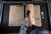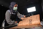 Seorang pengalih media menyelesaikan pengalihwahanaan naskah kuno di Perpustakaan Nasional (Perpusnas), Salemba, Jakarta, Kamis (1/8/2024). Sebanyak 6.700 dari total 12.700 naskah kuno yang ada di Perpusnas telah selesai dialihwahanakan dari konvensional menjadi digital sebagai upaya optimalisasi tempat penyimpanan, keamanan dari berbagai bentuk bencana, serta meningkatkan resolusi gambar dan file menjadi lebih stabil. ANTARA FOTO/Fauzan/aww.